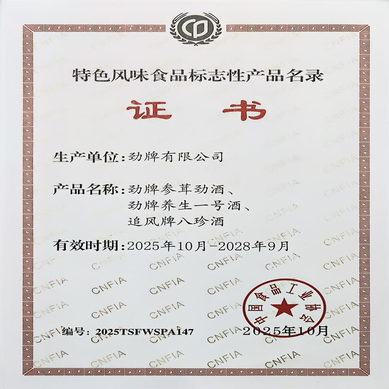 近日,经中国食品工业协会组织专家严格评审,劲牌有限公司旗下“参茸劲酒、养生一号、追风八珍酒”三款产品...