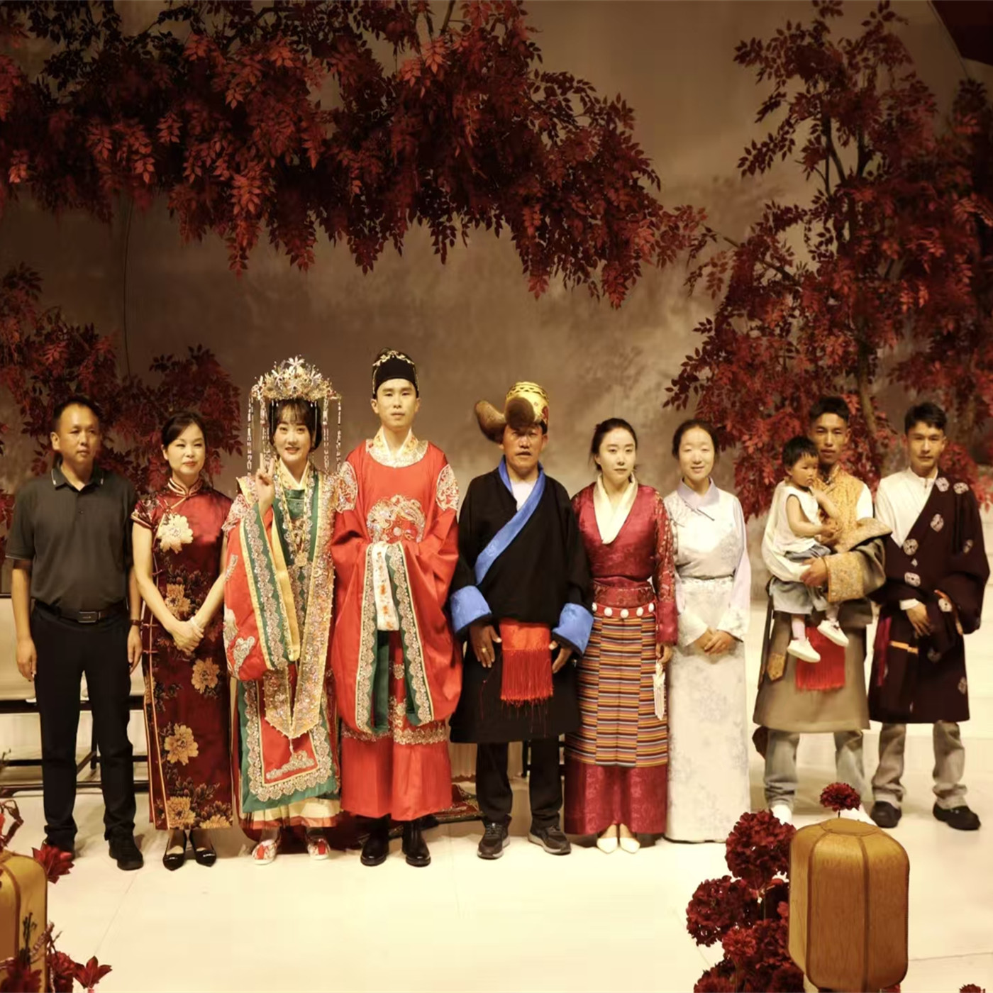 十一期间,大冶市天鹅礼宴中心,挂满红绸的大厅弥漫着桂花香。藏族姑娘索朗卓嘎戴上凤冠,穿上绣有并蒂莲裙...